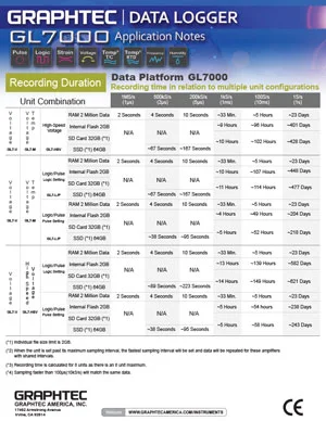 Note: the maximum sampling speed per module based on the storage options for RAM, internal flash memory, SD Card (SDHC), and SSD module (128GB).