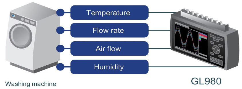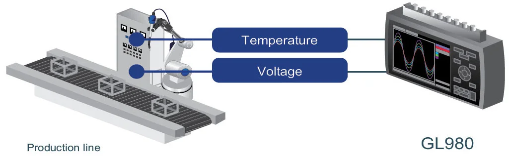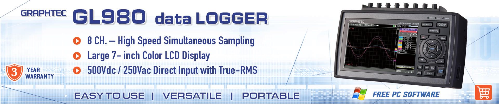 GL980 is equipped with an isolated input mechanism to protect signals from interferrences caused by noise from other channels. 16-bit A/D converter adopted to achieve hi-speed and hi-resolution measurements.
